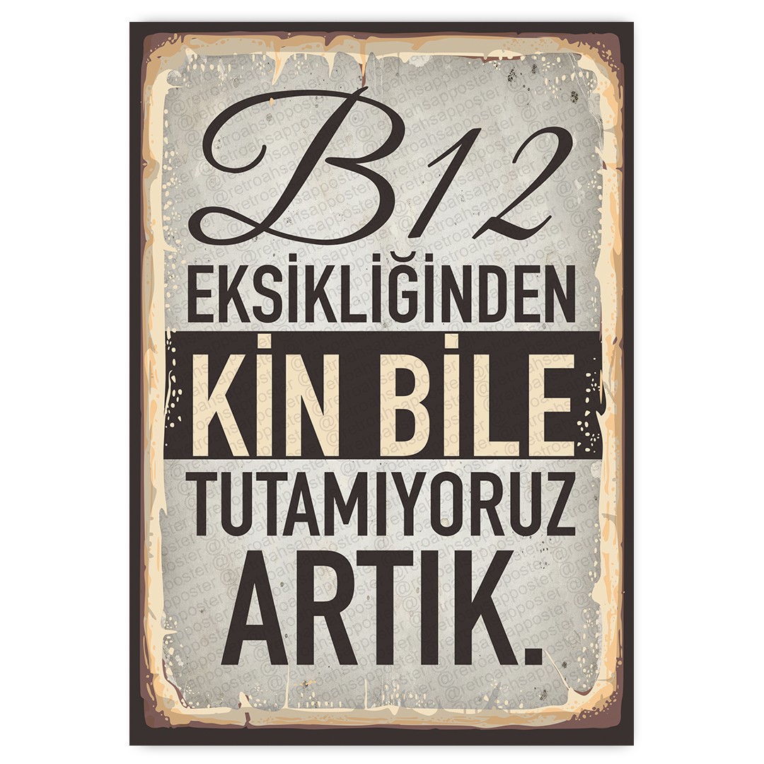 Retro Ahşap Poster - B12 EKSİKLİĞİNDEN KİN BİLE TUTAMIYORUZ ARTIK.