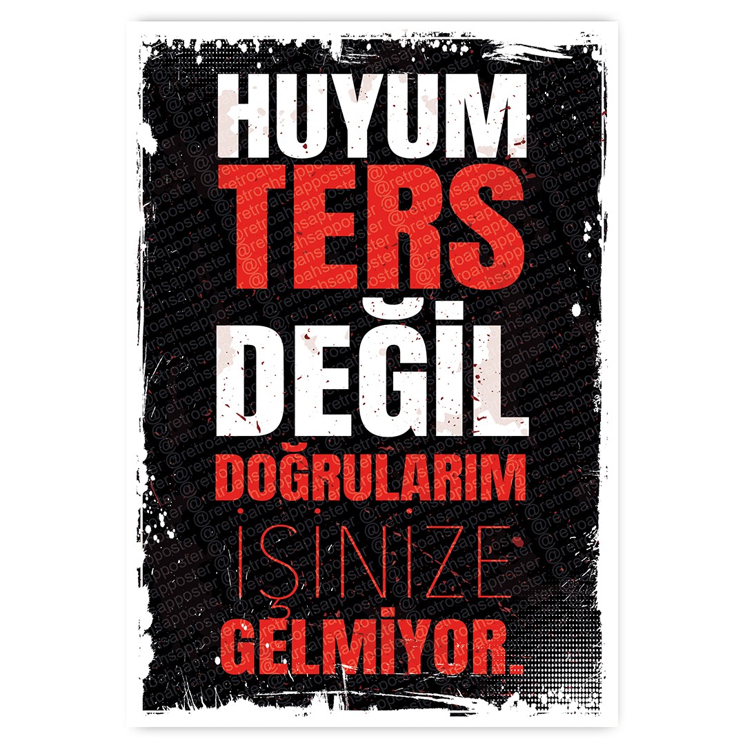 Retro Ahşap Poster - HUYUM TERS DEĞİL DOĞRULARIM İŞİNİZE GELMIYOR.